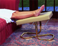 Soft foam cushion in leatherette vinyl with flexible spring base that automatically adjusts to the user's sitting and leg position. Can also be used in bed as a back rest. Height 432mm (17"). Cushion size 610 x 305 x 76mm (24 x 12 x 3"). Weight 3.3kg.