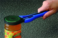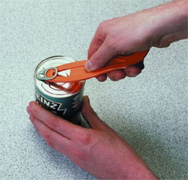 A plastic ring-puller that provides excellent leverage and has a large broad surface for grip. The flat end fits easily under the tab to break the seal prior to levering the lid of with the hook end. Lenght 160mm (6 1/4").