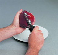 Choose this vegetable peeler for a soft, comfortable grip. The ergonomic, built-up handle allows those with a weak grip to peel food easily and safely. Flexible ribbing covers the length of the handle for a comfortable non-slip grip, ensuring a firm hold, even when wet.