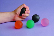 Gel balls colour coded to provide variable resistance training for hands, fingers and forearms. The balls are pleasant to touch and return back to their original shape after each squeeze.