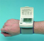 With one touch the cuff inflates automatically around the wrist providing a fast and accurate measurement, on a large LCD digital display. The reading shows a synchronised display of date, time, pulse and systolic/diastolic pressure. Will store up to 40 sets of complete records. Lightweight (110g without batteries) with a dust proof cover and carrying case. Comes with 2 x AAA batteries lasting approx. 400 uses. With automatic power shut off and low battery indicator. Dimensions: 68 (W) x 76 (H) x 34 (D)mm. Wrist cuff 135 - 215 mm (5.3 - 8.5").